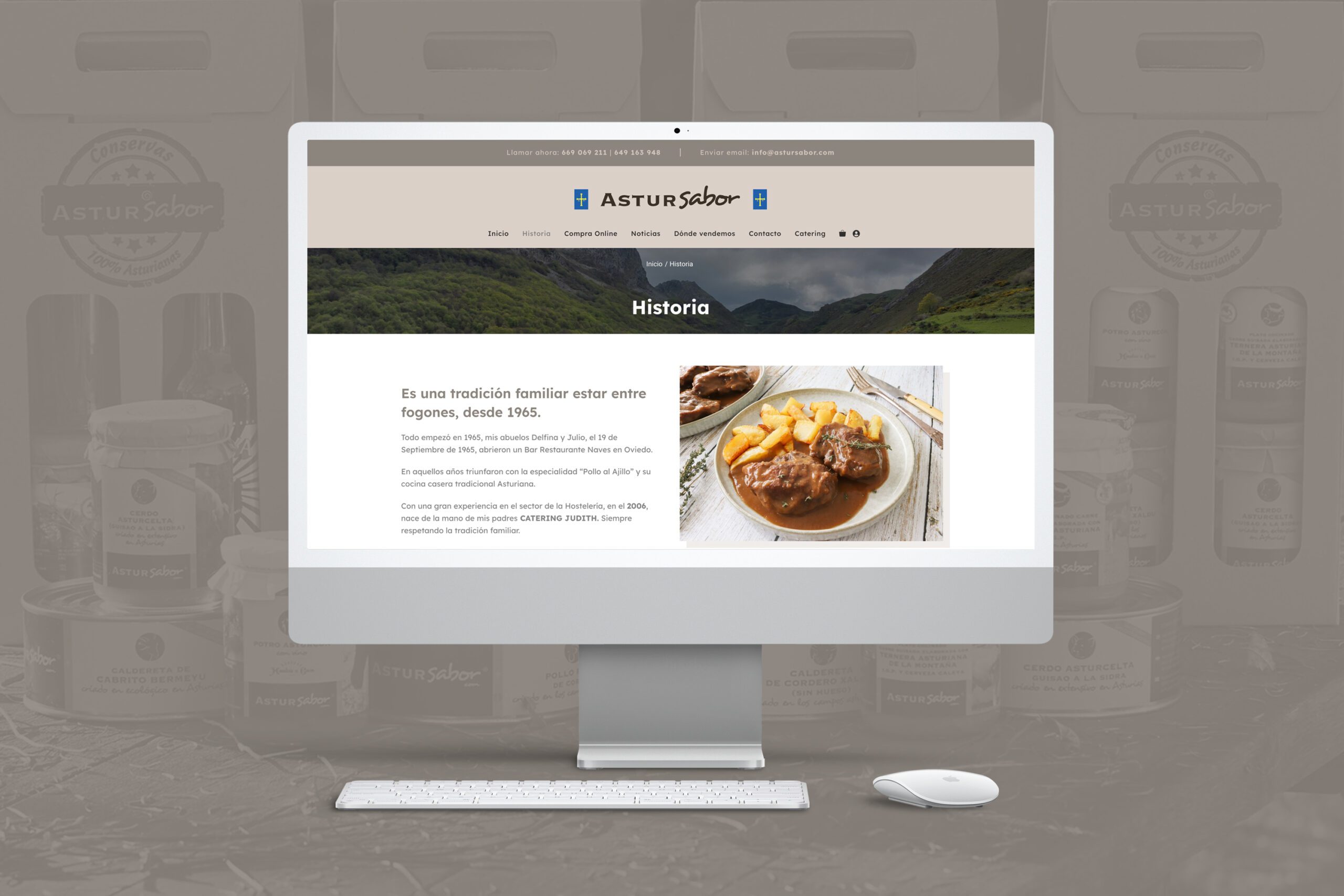 Por último, tratamos de conectar Astursabor con su origen en la hostelería y el catering, haciendo visibles los vínculos con Catering Judith y el crecimiento de la empresa a través de la sección de noticias. La web funciona así como escaparate para la marca, para la tienda online , sirviendo como carta de presentación.