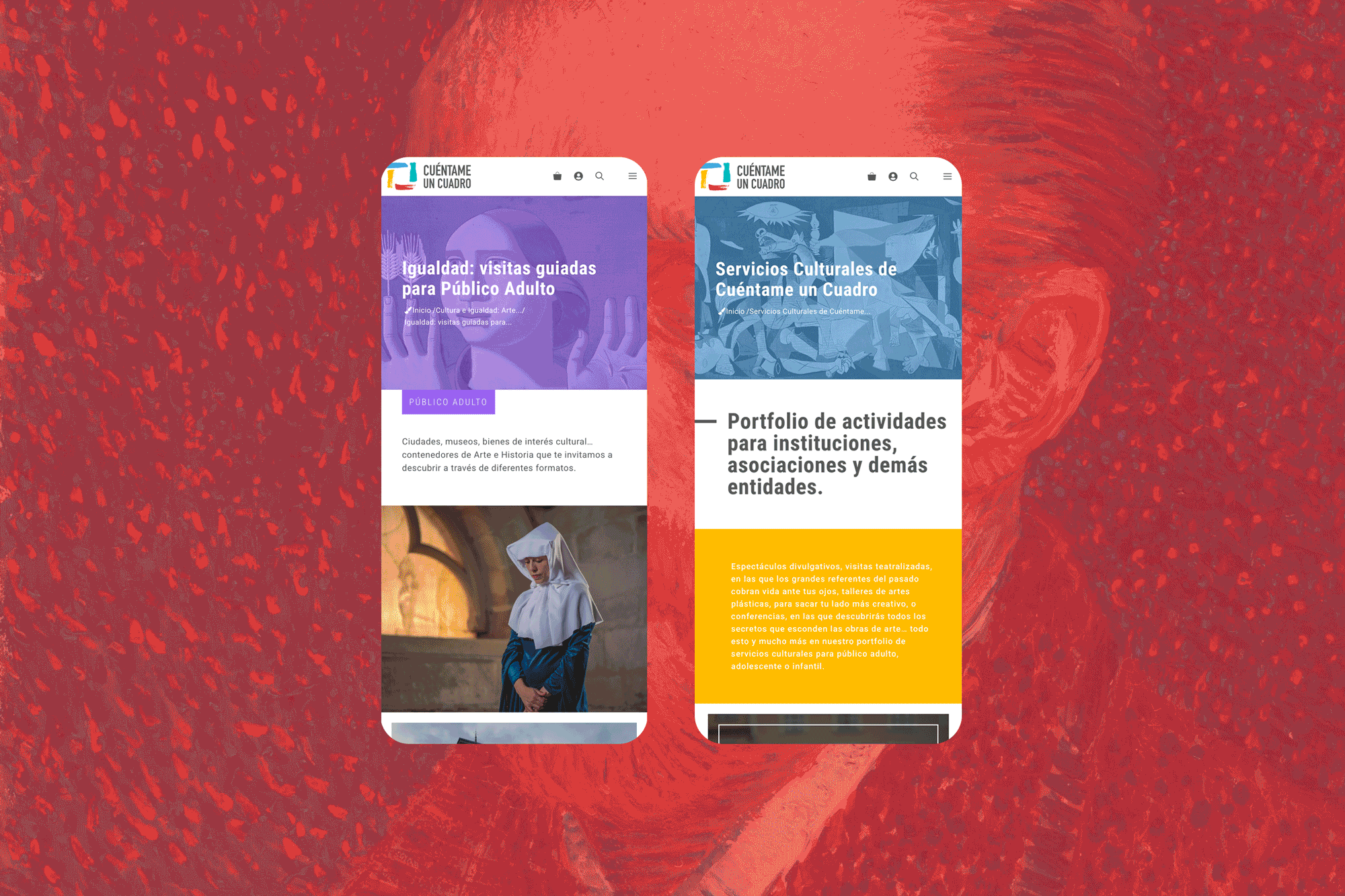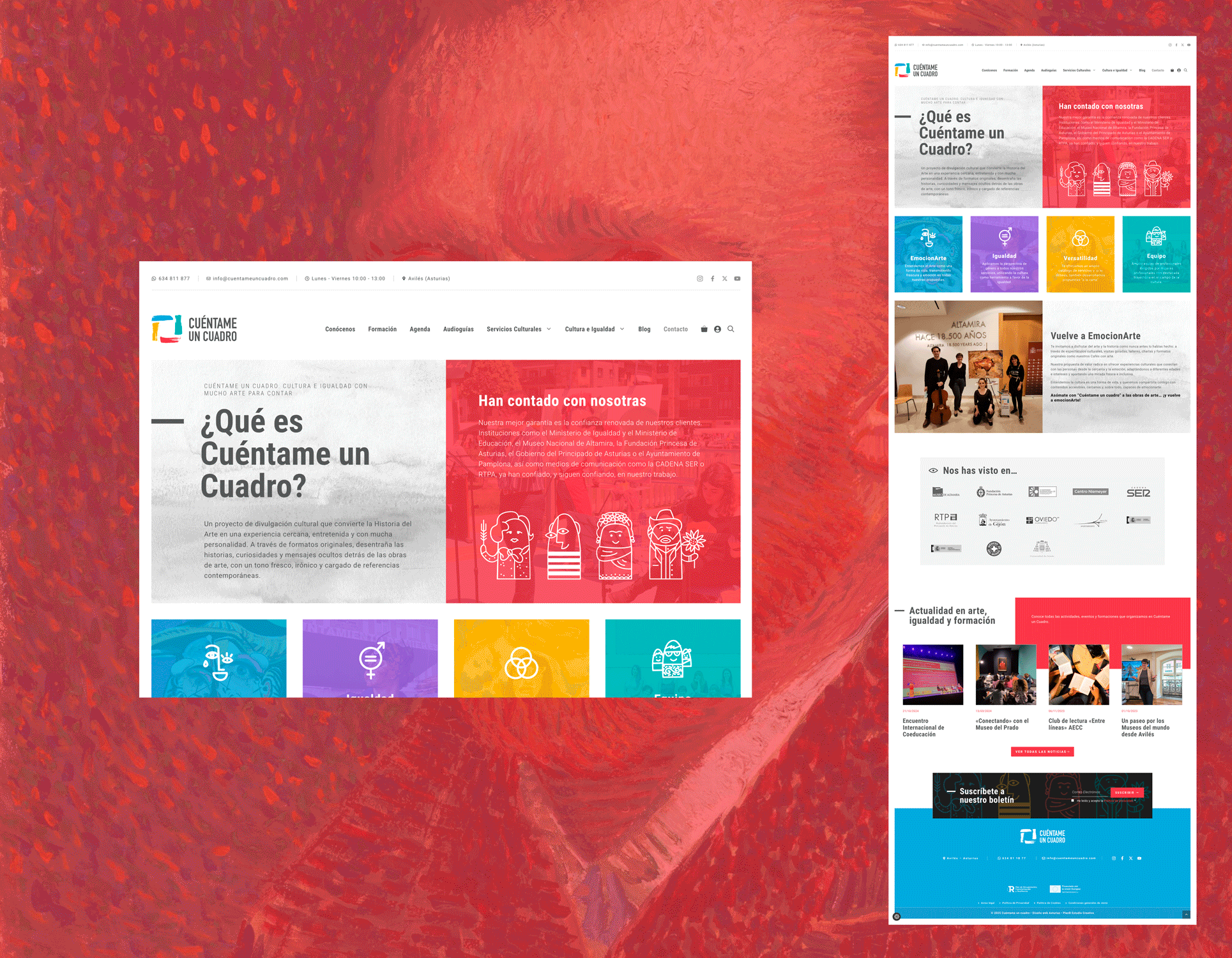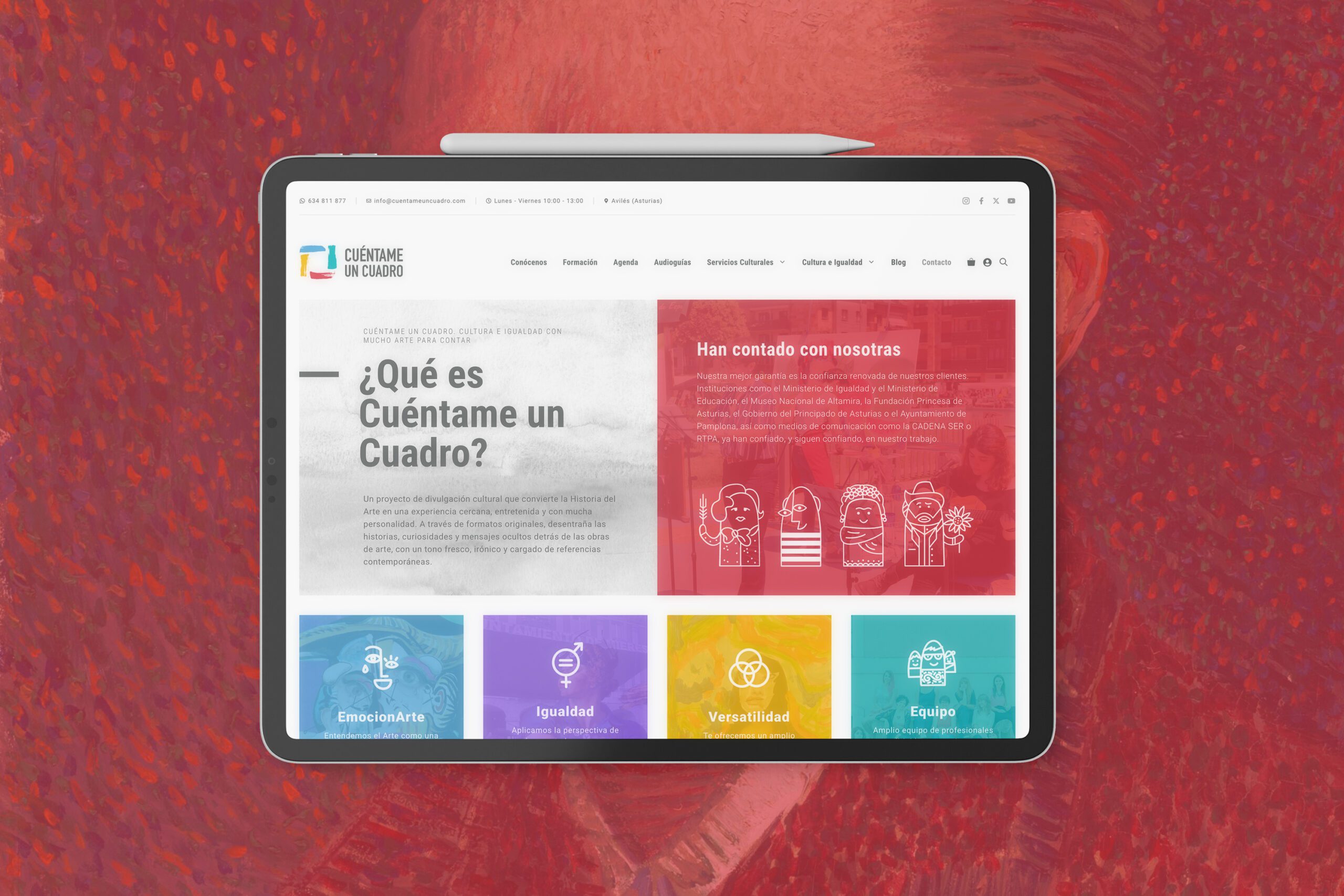 El reto era ordenar ese universo en una web: que un ayuntamiento, un museo, un cole o una familia entendiesen en pocos clics qué es Cuéntame un Cuadro, qué servicios ofrece y cómo pueden trabajar juntos. Sin perder la chispa ni el tono cercano y con una estructura muy clara.